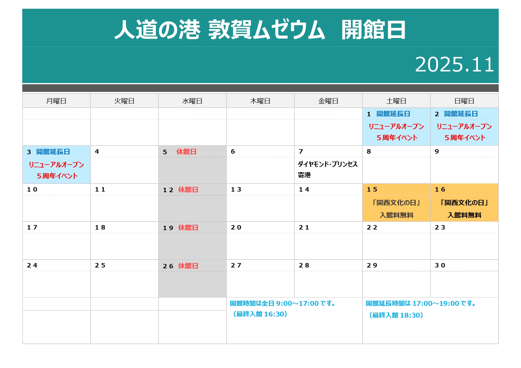 入館可能時間は閉館30分前までとなりますのでご注意ください。